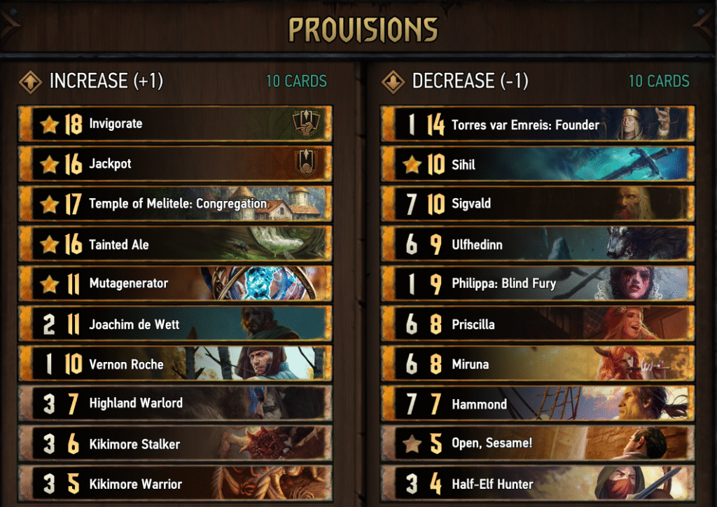 (/) Okay buff, but with a scent of powercreep / inviting non-archetypical play amongst golds. While unplayed right now, Philippa at 9-cost would be just a good midrange card and quite easy inclusion in Golden Nekker decks, especially in the ones running Kaedweni Revenants.